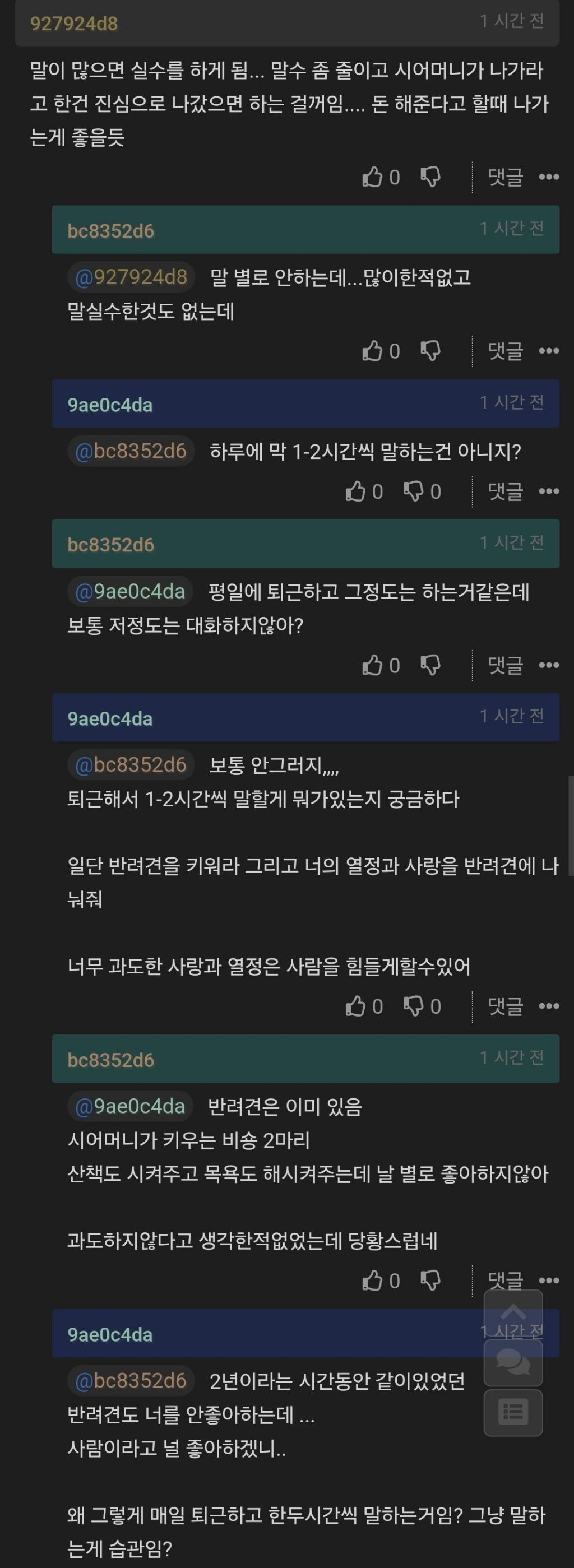 작성자초코쁘띠우유 작성시간 26.01.07 그냥 글쓴이가 딱히 뭘 잘못한건 잘 모르겠고 그냥 겁나 안맞는 성향인사람끼리 사는갑다싶음.. 남편이 제일 별로