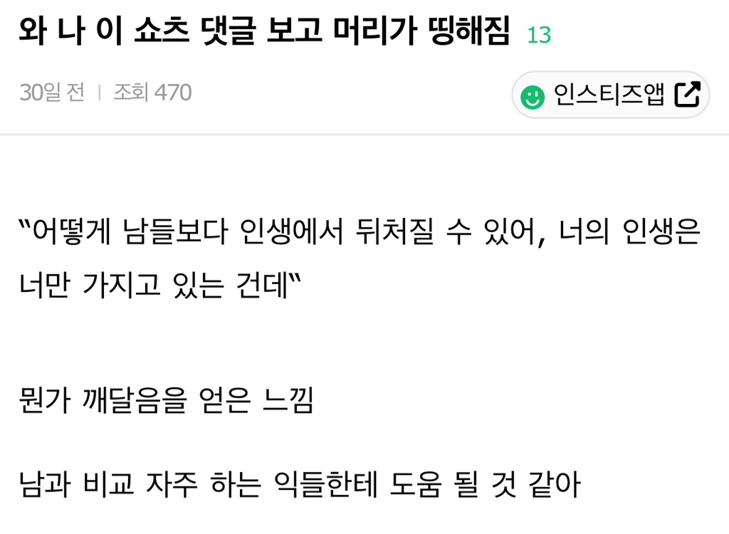 [기타]와 나 쇼츠 댓글 보고 머리가 띵해짐 작성자정보|작성시간26.01.07|조회수4,290 목록 댓글 10 글자크기 작게가 글자크기 크게가 다음카페 우리 동네 목욕탕 다음검색 현재 게시글 추가 기능 열기 북마크 공유하기 신고 센터로 신고 댓글 댓글 10 댓글쓰기 답글쓰기 댓글 리스트 작성자통모짜쿨냥이 | 작성시간 26.01.07 샤갈 눈물나네 작성자두알이파 행동대장 | 작성시간 26.01.08 헉 맞는 말이잖아...!? 작성자이번주로또1등당첨주인공은바로나 | 작성시간 26.01.08 좋다,, 작성자잠실 | 작성시간 26.01.08 좋은 말이네 작성자haPPiness | 작성시간 26.01.12 좋다 댓글 전체보기