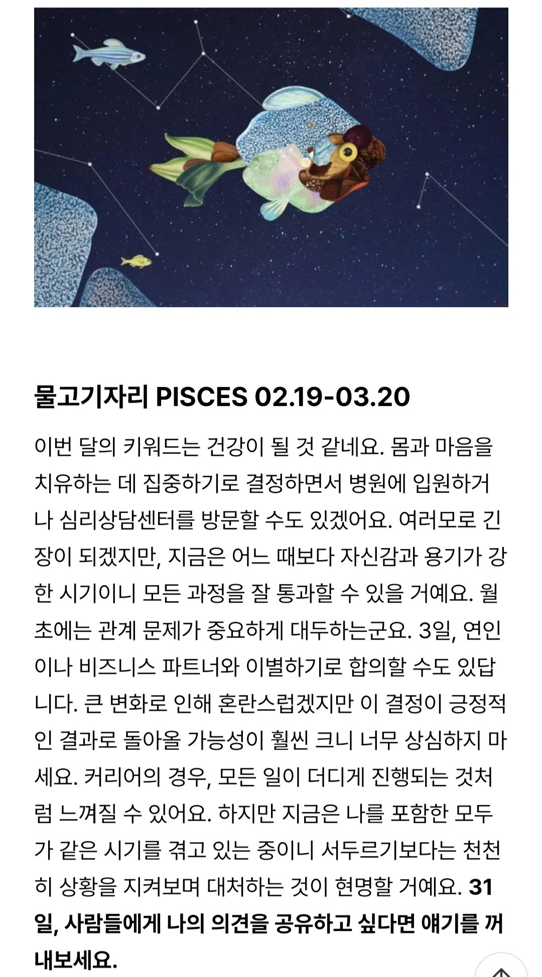우리 동네 목욕탕 [기타]W코리아 3월 별자리 운세 작성시간26.02.28|조회수5,256 목록 댓글 56 글자크기 작게가 글자크기 크게가 다음검색 현재 게시글 추가 기능 열기 북마크 공유하기 신고 센터로 신고 댓글 56 댓글 리스트 작성시간 26.03.02 복채 작성시간 26.03.03 복채 작성시간 26.03.04 복채 작성시간 26.03.07 복채 작성시간 26.03.09 복채 카페 방문해 더 많은 댓글 만나기!