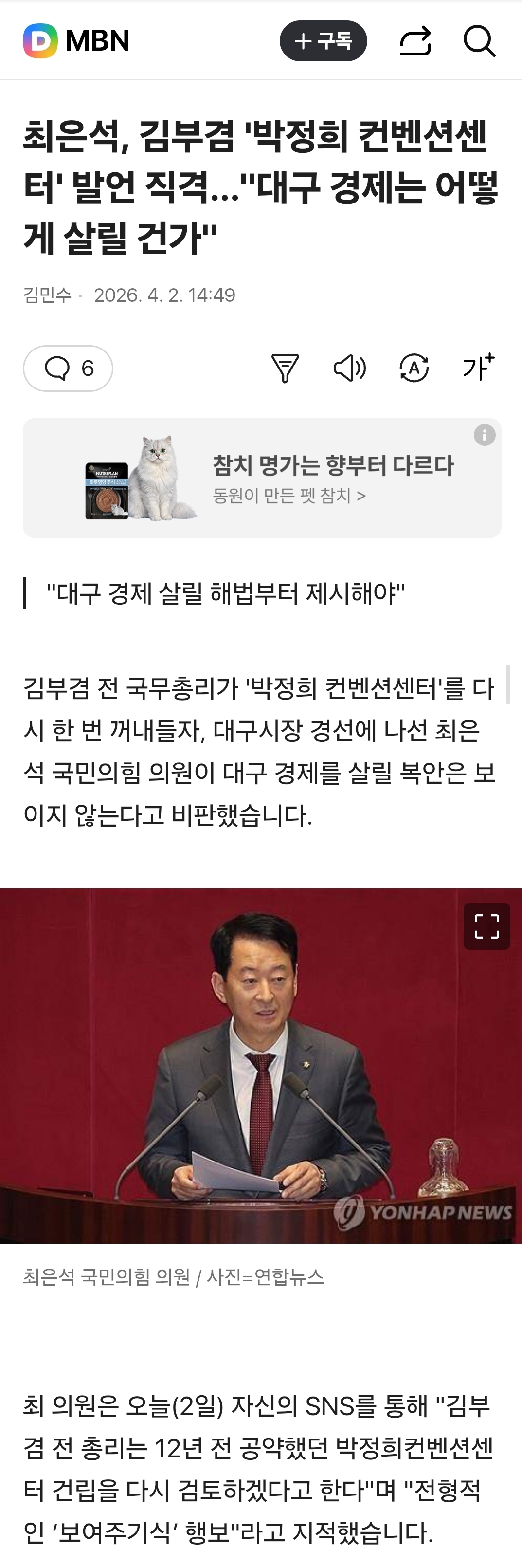 [기사]최은석, 김부겸 '박정희 컨벤션센터' 발언 직격…"대구 경제는 어떻게 살릴 건가" 작성자포도맛체리|작성시간26.04.02|조회수191 목록 댓글 3 글자크기 작게가 글자크기 크게가 《 우리 동네 목욕탕 / 닉네임 》 https://v.daum.net/v/20260402144926173 다음검색 현재 게시글 추가 기능 열기 북마크 공유하기 신고 센터로 신고 댓글 댓글 3 댓글쓰기 답글쓰기 댓글 리스트 작성자포도맛체리 작성자 본인 여부 작성자 | 작성시간 26.04.02 민주당이 먼저 분신사바해서 똥줄타나 작성자용과집사 | 작성시간 26.04.02 은석이 닥치자 작성자로시 | 작성시간 26.04.02 어쩌라구지들이 안한걸 꼭 증명하래 댓글 전체보기