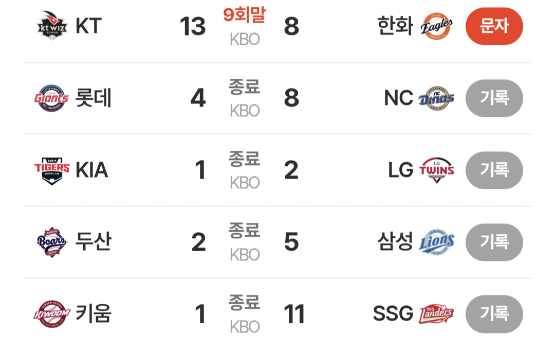[스포츠]260402 KBO 프로야구 경기결과 및 오늘의 야구 작성자싱글방글회|작성시간26.04.02|조회수868 목록 댓글 24 글자크기 작게가 글자크기 크게가 《 우리 동네 목욕탕 》 오늘의 야구대전 : KT 장성우 3회 초 만루홈런대구 : 삼성 류지혁 8회 말 쐐기 투런창원 : NC 박건우 5회말 역전 적시 2루타KT : 개막 이후 패가 없는 팀 다음검색 현재 게시글 추가 기능 열기 북마크 공유하기 신고 센터로 신고 댓글 댓글 24 댓글쓰기 답글쓰기 댓글 리스트 작성자화난 LG팬 | 작성시간 26.04.02 new 엘지 더해 외쳐 탑지할때까지 작성자우드랜드 | 작성시간 26.04.02 new 해체해라 작성자내 정보 초기화 | 작성시간 00:03 new 최강삼성 작성자닐리리야아 | 작성시간 00:23 new 좆데... 작성자랜선재명딸 | 작성시간 00:46 new 엘지야 개막 2연승 축하 댓글 전체보기