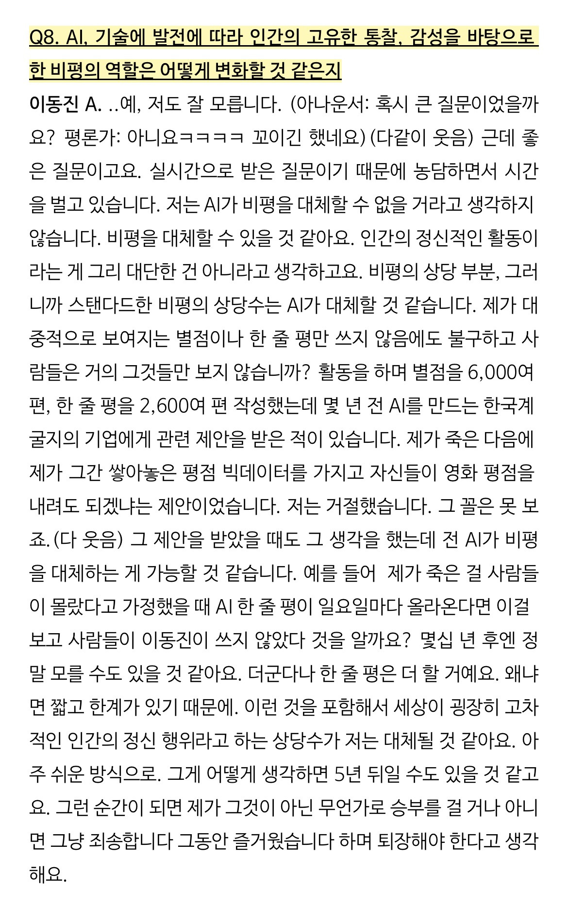 현장에서 즉문즉답한 거래서 더 감탄했음
