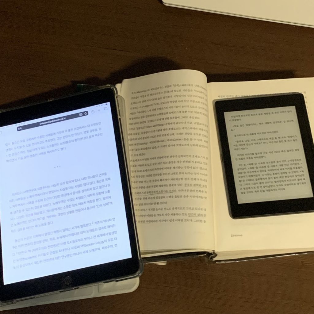 [기타]사용하고 독서량 늘어난 사람 많다는 전자기기 작성자침묵|작성시간26.04.09|조회수1,045 목록 댓글 12 글자크기 작게가 글자크기 크게가 https://www.dmitory.com/issue/360483512 《 우리 동네 목욕탕 / 침묵 》 이북리더기원리장점- 가볍고 눕독하기 편하다- 밤에 스탠드 안켜도 책읽을 수 있음- 이사갈때 책 무게 걱정 안해도 됨- 대중교통에서도 쉽게 꺼내서 읽을 수 있음- 타인이 내가 무슨책을 읽는지 알수 없음단점- 가격 (20-30 정도/화면이 커질수록 비싸짐)Q. 휴대폰이나 패드로 보는 거랑 별 차이 없지 않나?좌 태블릿 우 이북리더기 좌 이북리더기 우 패드 다음검색 현재 게시글 추가 기능 열기 북마크 공유하기 신고 센터로 신고 댓글 댓글 12 댓글쓰기 답글쓰기 댓글 리스트 작성자야구는 자해다 | 작성시간 26.04.09 교보에서 펀딩힌 거 고민하다가 안 샀는데 그냥 살 걸 그랬어... 따흐흑 후회중 작성자고은혁 | 작성시간 26.04.09 아이패드랑은 느낌이 다른가? 작성자따라땃따라땃따따 | 작성시간 26.04.09 한달에그래고 4권은 읽긴하더라.. 작성자야구가뭐예요 | 작성시간 26.04.09 큰맘먹고 교보 펀딩한거 샀는데 빨리 오너라 작성자우리고양이는귀여워너네도알고있지 | 작성시간 26.04.09 너무 갖고 싶은데 너무 비싸 댓글 전체보기