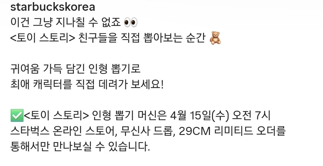 [스크랩] [기타]스타벅스 X 토이스토리 인형 뽑기 머신 판매 작성자침묵|작성시간26.04.10|조회수3,748 목록 댓글 6 글자크기 작게가 글자크기 크게가 출처: 여성시대 눈물이방울방울 https://www.instagram.com/reel/DW8Ers3ziRB/?가격 11만원..ㄷㄷ 다음검색 스크랩 원문 : *여성시대* 차분한 20대들의 알흠다운 공간 현재 게시글 추가 기능 열기 북마크 공유하기 신고 센터로 신고 댓글 댓글 6 댓글쓰기 답글쓰기 댓글 리스트 작성자죽고싶은땃쥐 | 작성시간 26.04.10 가격미친 5만원이하로 수정해 작성자곽됴구 | 작성시간 26.04.10 헐̑̈ 개귀엽다 근데 가격 미쳤네 작성자알맹 | 작성시간 26.04.10 너무 비싸.. 작성자챰치김밥 | 작성시간 26.04.10 저거랑 비슷한거 카톡 선물하기에서 4만원대에 파는데ㅋㅋ 작성자맥주 | 작성시간 26.04.10 가깡 미쳤네 댓글 전체보기