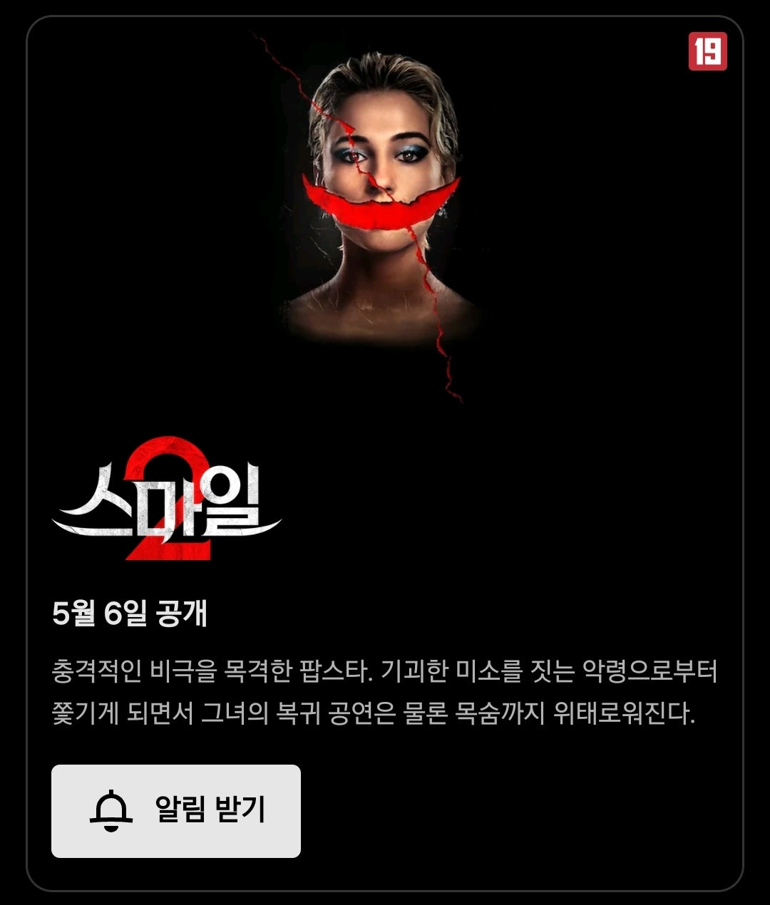 [스크랩] [영화]영화 <스마일 2> 넷플릭스 공개 예정 작성자침묵|작성시간26.04.10|조회수1,162 목록 댓글 6 글자크기 작게가 글자크기 크게가 5월 6일 공개 다음검색 스크랩 원문 : 쭉빵카페 현재 게시글 추가 기능 열기 북마크 공유하기 신고 센터로 신고 댓글 댓글 6 댓글쓰기 답글쓰기 댓글 리스트 작성자우리고양이는귀여워너네도알고있지 | 작성시간 26.04.10 와 개같이 기대중 작성자한낮의 시간표 | 작성시간 26.04.10 오오 작성자송영식 | 작성시간 26.04.10 1 안보고 봐도 되나!? 작성자드러눕 | 작성시간 26.04.10 1 먼저 봐야돼???? 볼래 작성자옵치바스 | 작성시간 26.04.10 1 존잼 2 노잼1 너무 너무 너무 재밌게봐서2 기대했었는데 대실망 댓글 전체보기