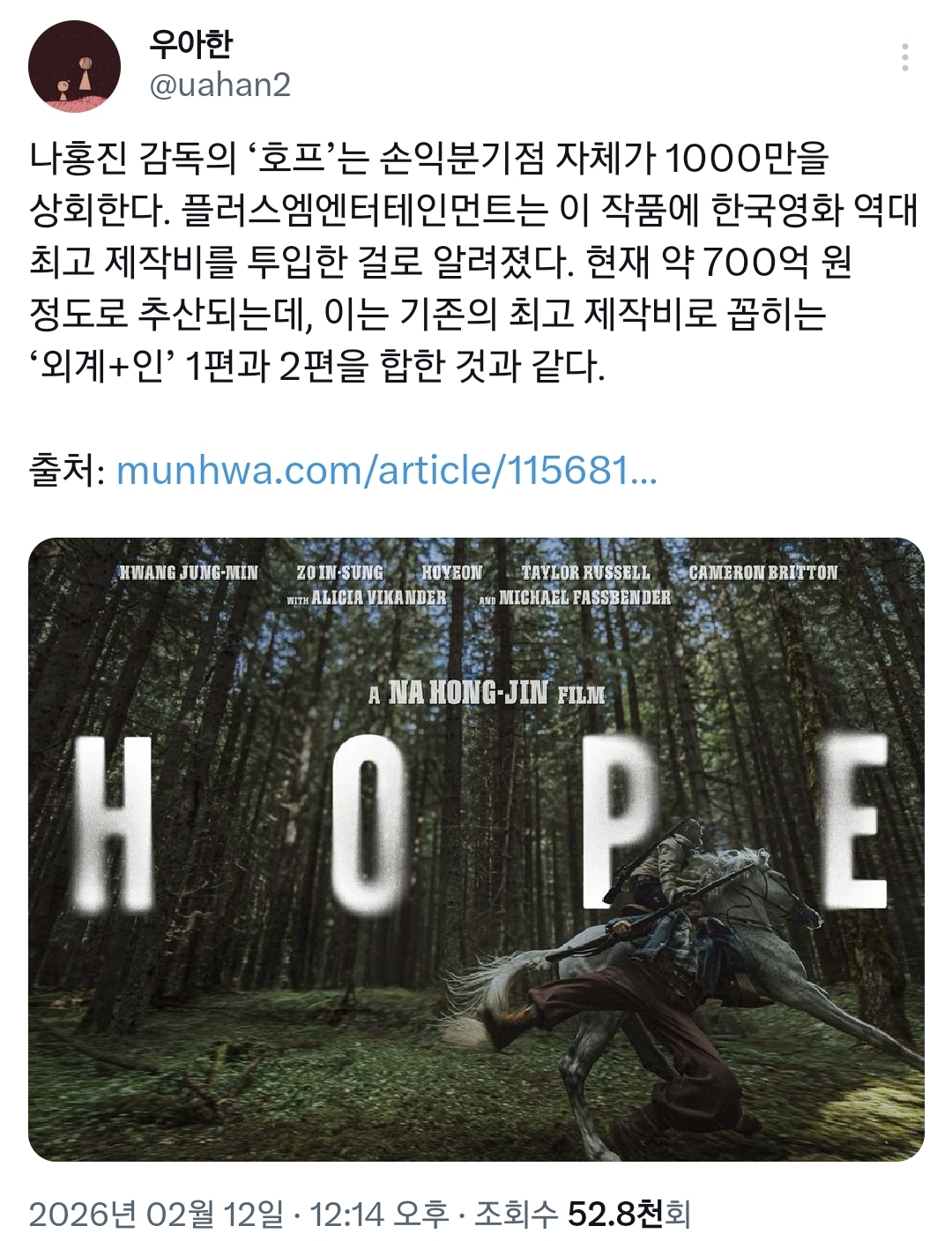 손익분기점은 국내 극장판매 수익으로만 예측 계산해서 산출한다고 함