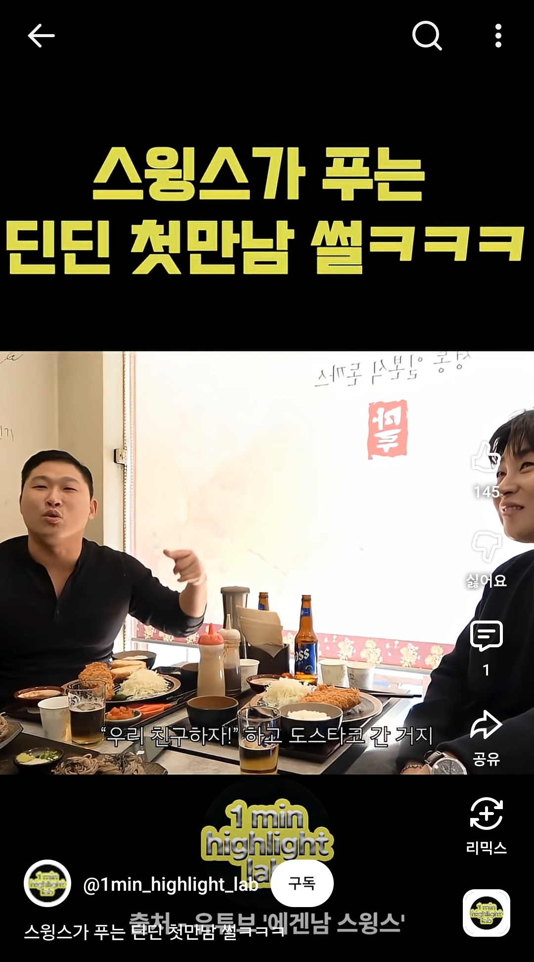 스윙스가 그 얘기를 듣고 너 남자다 같이 타코 먹으러 갈래? 해서 친해지게 됐다고 함
