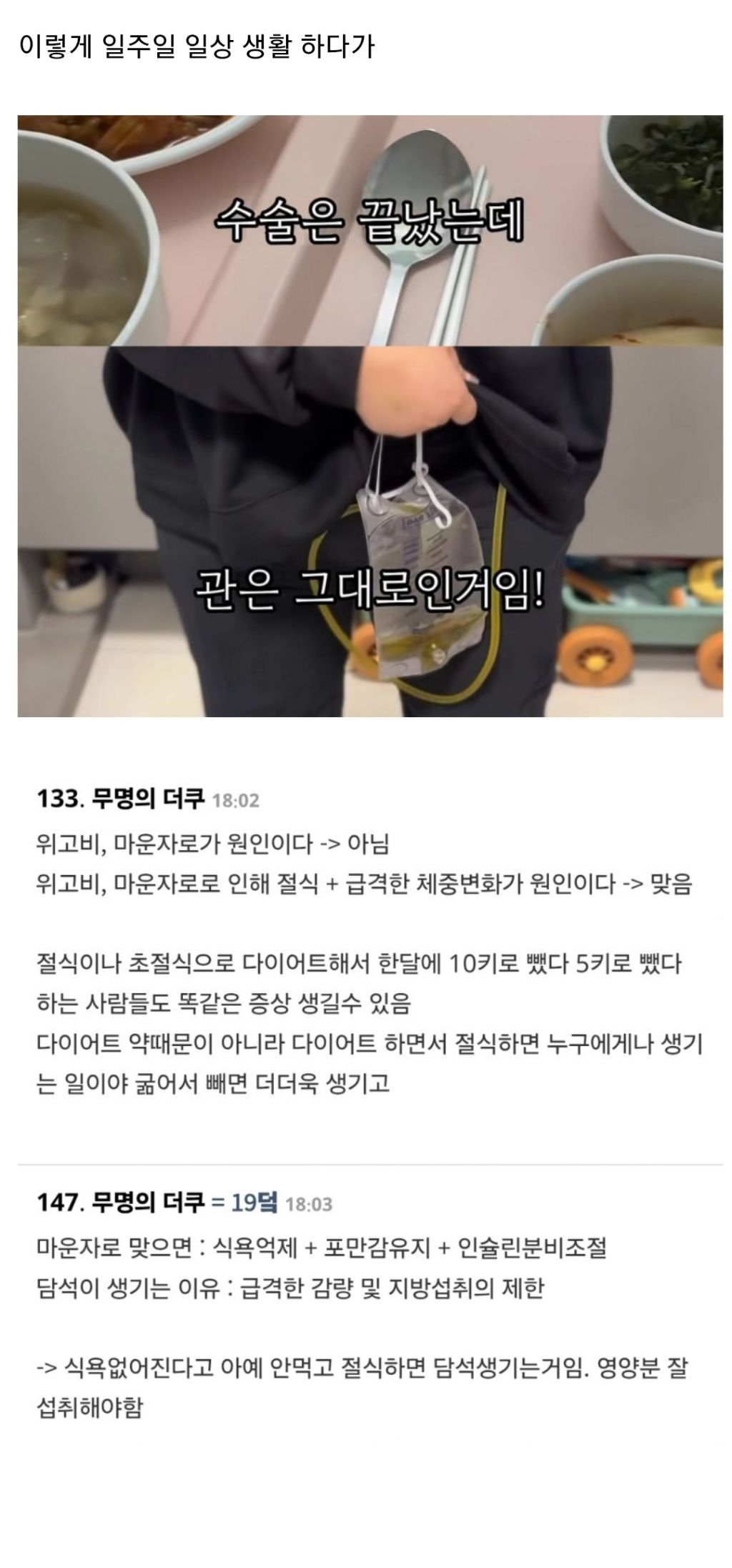 식단도 서서히 바꿔가며 몸이 적응할 시기를 줘야하는데 저 사람은 그게 안된거..