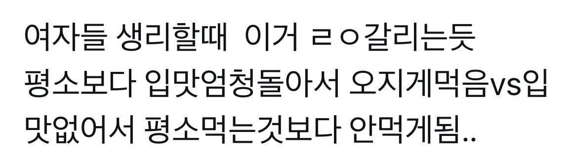 생리 직전까지 입트여서 막 먹다가 시작하면 입맛 없이 앓아누움...