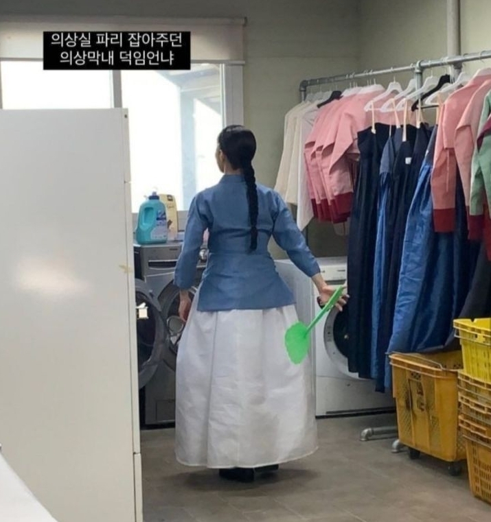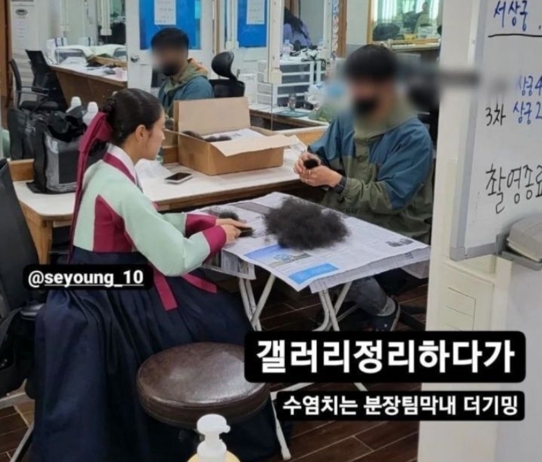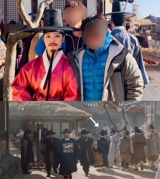 본인 촬영씬도 아닌데 남장하고 엑스트라로 출연
