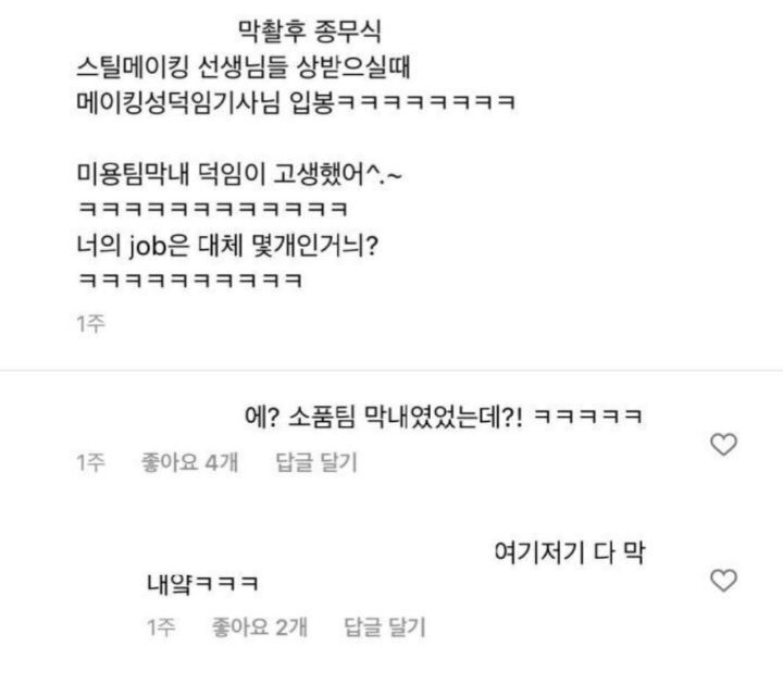스탭들이 다 덕임이(이세영) 자기 팀 막내였다고 함