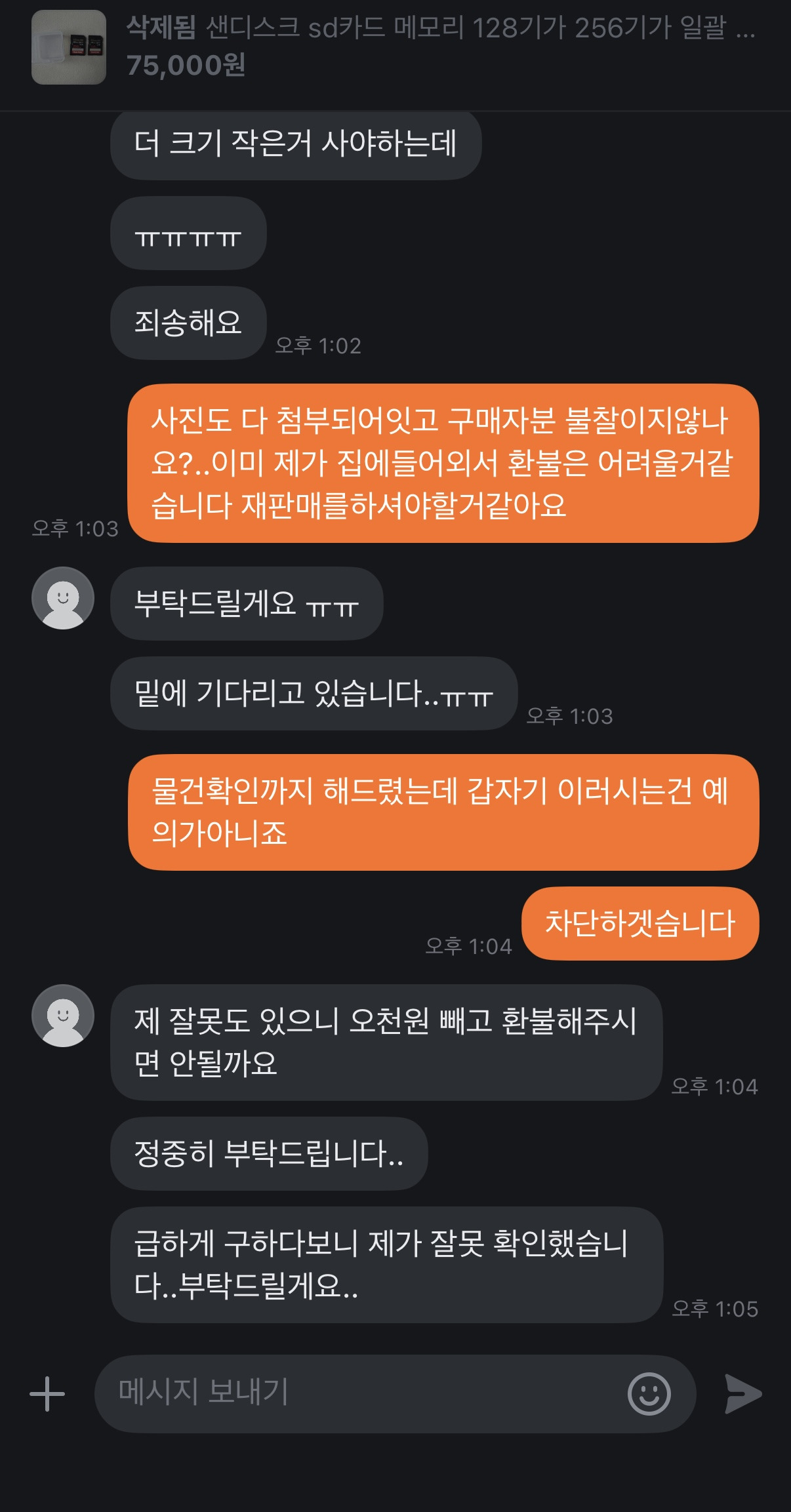 당근에 이상한사람 진짜많아ㅋㅋㅋㅋㅋㅌㅌㅋㅋㅋㅋㅋㅋ 작성자엄숭이|작성시간26.01.06|조회수209 목록 댓글 4 글자크기 작게가 글자크기 크게가 출처 : 다음 카페 우리 동네 목욕탕등신같은 한남이 물건확인이랑 입금까지해놓고 갑자기 단순변심 환불요구해서 무시했어^^ 다음검색 현재 게시글 추가 기능 열기 북마크 공유하기 신고 센터로 신고 댓글 댓글 4 댓글쓰기 답글쓰기 댓글 리스트 작성자요정 | 작성시간 26.01.06 ㅇㅉ 다시 판매하면 되지 왜 구걸이냐.. 작성자디스거스팅 | 작성시간 26.01.06 존나징징대네 작성자그래요내가바로로또1등이에요 | 작성시간 26.01.06 와 구질구질…. 작성자프리미 | 작성시간 26.01.06 지가 다시 팔면되지 존나 징짇거리네 댓글 전체보기