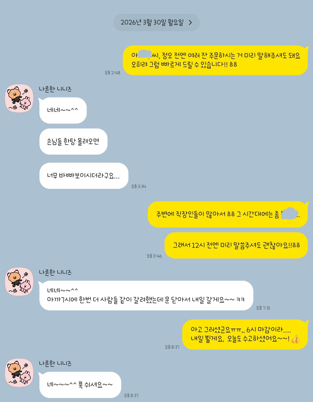 모르겠지만 그냥 저 사람 자체만 봤었을 때 진짜 존ㄴㄴ나 해맑아보이긴 했음.... 항상 만나서 나 보면서 주문할 때 표정이