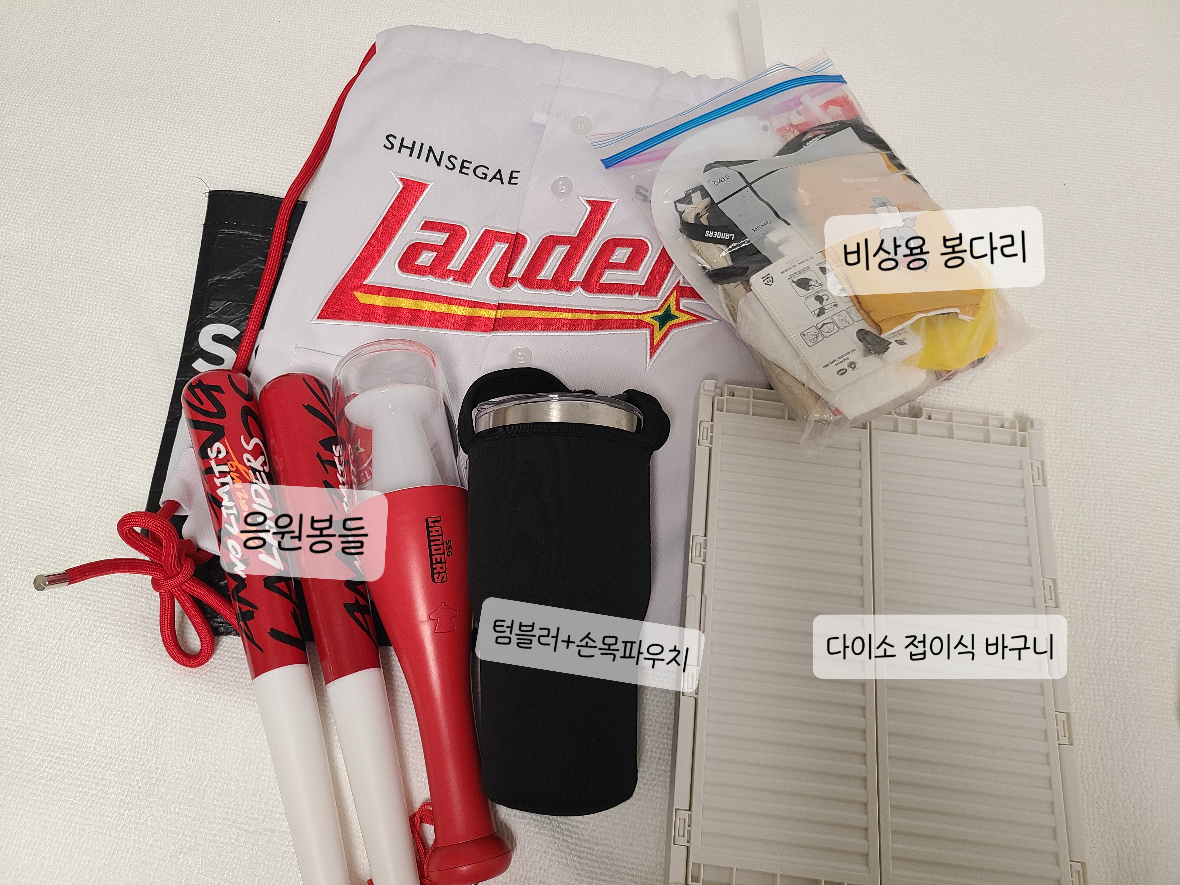 가방 안에 응원봉 두가지중에 플라스틱은 항상 챙기고 LED는 저녁경기때 들고가요