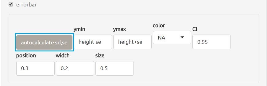 errorbar 체크 박스를 선택하고 autocalculate sd, se 버튼을 클릭합니다.