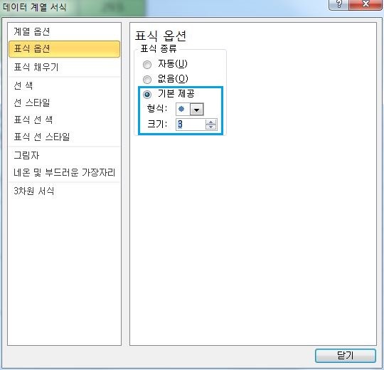 - 표식 옵션 메뉴에서 점의 모양과 크기를 위와 같이 변환해줍니다.
