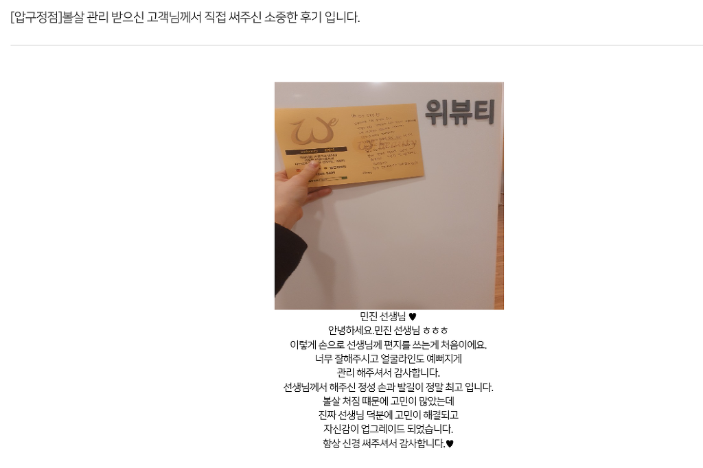 [압구정]볼살 관리 받으신 고객님께서 써주신 소중한 후기 입니다. 작성자apgujeong|작성시간20.01.06|조회수2 목록 댓글 0 글자크기 작게가 글자크기 크게가 다음검색 현재 게시글 추가 기능 열기 북마크 공유하기 신고 센터로 신고 댓글 댓글 0 댓글쓰기 답글쓰기 댓글 리스트