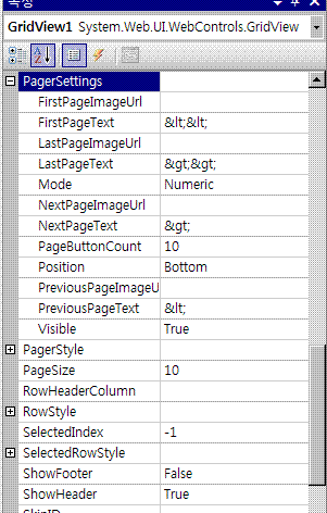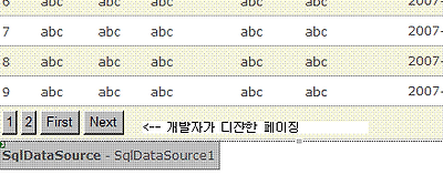 GridView 컨트롤의 AllowPaging 속성을 true로 설정하면 GridView 컨트롤에서 페이징을 위한 UI(사용자 인터페이스) 컨트롤을 자동으로 추가합니다.
