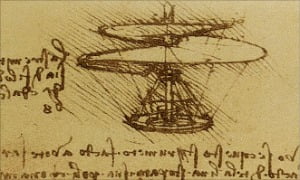 그가 그린 낙하산 날개는 오늘날 굴삭기 드릴과 비슷한 나사 모양이다. 그는 납작한 나선형 프로펠러 두 개를 역회전시키는 방식으로 헬리콥터 날개를 제작했다. 그리고 풀 먹인 천을 넓은 돛처럼 펼쳐 원형판 위의 돛대에 달고 고속으로 회전시키면 공중으로 올라갈 것이라고 설명했다. 새가 나는 원리를 활용한 이 아이디어는 현대 헬리콥터의 원형이 됐다.