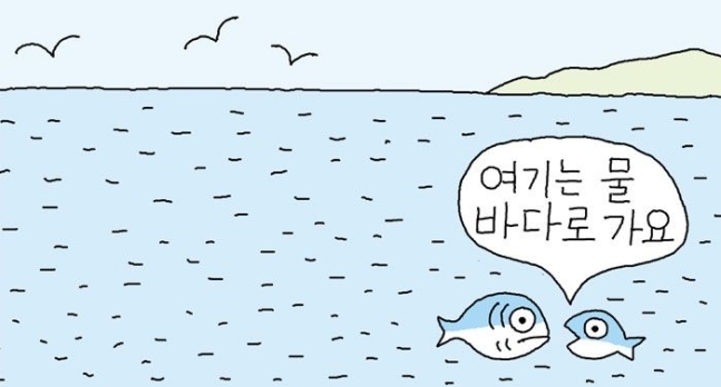 우리는 누구나 행복해지기를 원한다. 그리고 행복에 대해 저마다 기준을 세운다. 경제적인 풍족함, 학벌, 커리어, 이상적인 배우자 등 각자가 생각하는 행복의 조건은 다양하다. 아마도 젊은 물고기는 수심과 온도 같은 바다의 조건을 상상하며 기준을 세웠을 것이다. ‘바다는 분명 이런 색이겠지’라거나, ‘그곳은 완전히 다른 세상일 거야’라고.