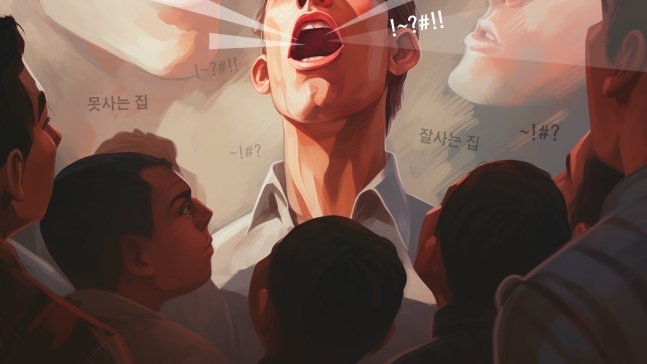 한국어로 ‘그 집 못산다’는 가난한 사람을, ‘그 집 잘산다’는 부자를 뜻한다. 김찬호의 책 ‘모멸감’에는 한국어를 배우는 외국인이 가장 어려워하는 부분이 이것이라고 지적한다. ‘잘사는 것=well being’인데 왜 한국에서는 부자를 잘산다고 말하는지 이해하지 못한다는 것이다. 가난해도 태도와 가치관에 따라 얼마든지 잘 살 수 있기 때문이다.