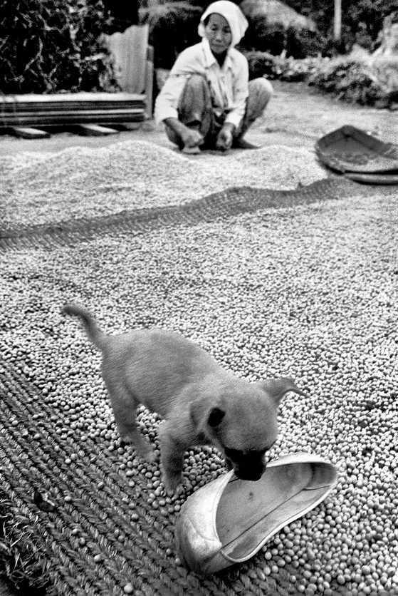 볕 좋은 가을날에는 집집마다 마당에 멍석을 깔고 고추든 깨든 콩이든 곡식을 말리곤 했다. 마침 한 농가에 들어섰을 때, 강아지가 할머니의 벗어놓은 고무신을 물고 내빼는 순간을 목격했다. 무관심하게 일만 하는 할머니에게 심술이 났나 보다. 할머니는 그제야 ‘복슬아~’ 부르며 구슬려 보지만 쉽게 돌아서지 않을 태세다. 온갖 곡식을 다 잘 말리는 할머니도 복슬강아지의 장난기를 말리긴 쉽지 않은 듯, 그러나 서두르지 않는다. 제풀에 지치면 돌아온다는 것을 알기 때문이다.