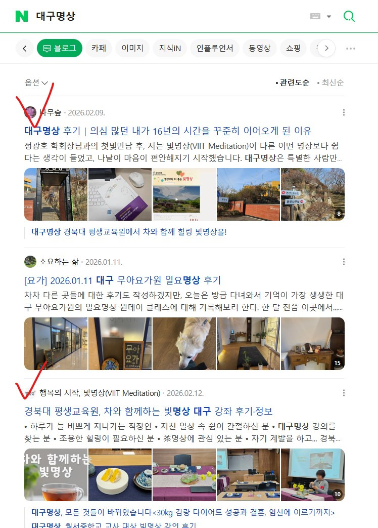 네이버에서 '빛명상'을 검색하면 저희 콘텐츠를 거의 보실 수 없었습니다.
