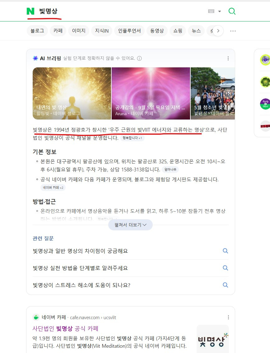 오히려 정체를 알 수 없는 유사 빛명상 단체들의 글이 많았죠.