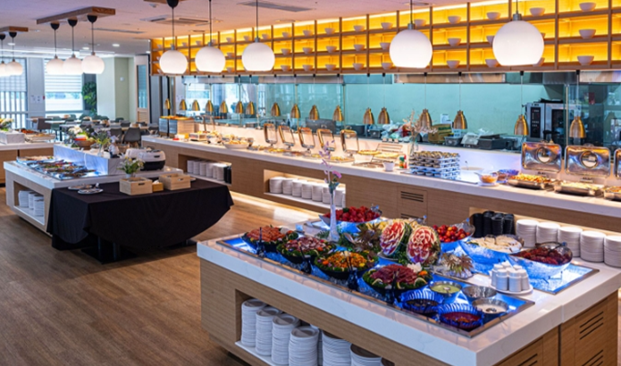 연회장에서는 시간대별로 공간을 분리하여 식사를 하였습니다. 예를 들면, 11시 결혼식의 하객이 입구를 기준으로 왼쪽부분을 사용한다면 12시30분 결혼식의 하객은 입구를 기준으로 오른쪽부분을 사용한다고 생각하시면 됩니다. 그렇기에 웨딩 후에 신랑·신부들의 하객이 겹쳐서 서로 혼동하는 일은 없다고 생각하셔도 됩니다. 결론적으로 같은 공간에서는 3시간 간격으로 손님들이 식사를 하기에 잘 관리되고 있다는 느낌이 들었으며, 식사는 깔끔하고 맛있어 보였어요.