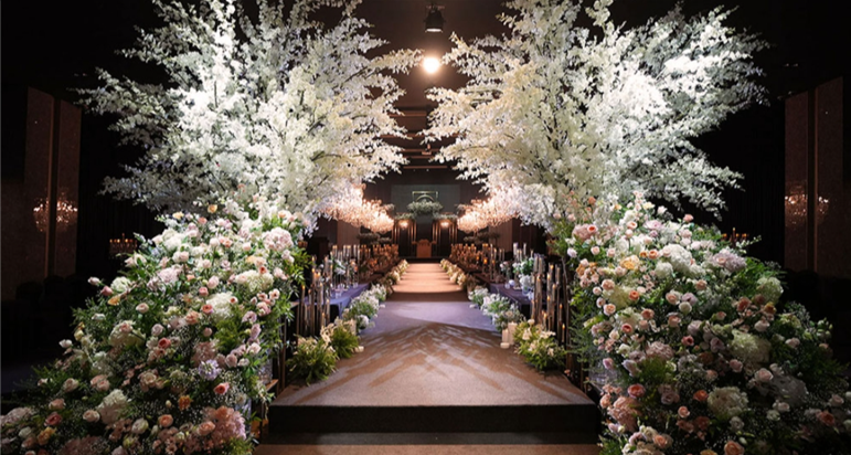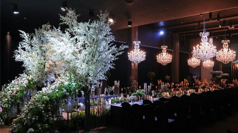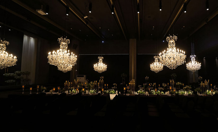 제가 지금까지 결혼식은 수십 번 참여했는데요, 샹들리에가 움직이는 식장은 처음 봤었던 것 같아요. 신부가 웨딩드레스를 입고 천천히 버진로드를 걸을 때 그 움직임에 맞춰서 내려오는 샹들리에가 매우 인상적이었어요. 샹들리에의 움직임을 보느라 사진은 찍지 못하였지만 투어하실때 눈에 담아두시면 나중에 기억에 남을 것 같습니다.