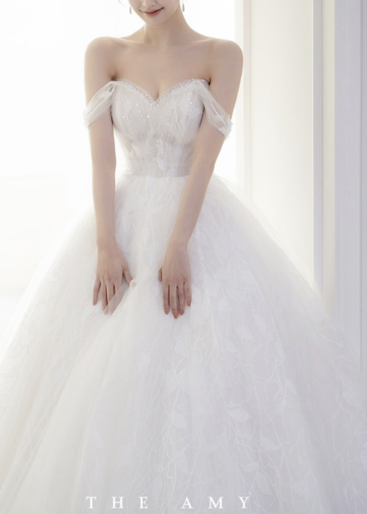 (2) 두 번째 드레스는 분위기가 완전히 달랐다. 스커트 볼륨이 훨씬 풍성했고, 허리 아래로 퍼지는 라인이 확실하게 강조된 공주풍 스타일이었다. 움직일 때마다 스커트가 크게 퍼지면서 존재감이 확 살아났고, 사진으로 찍으면 예쁘게 나오겠다는 생각이 먼저 들었다. 다만 상체 디자인도 장식이 들어간 편이라 전체적으로 시선이 분산되는 느낌이 있었고, 예비신부의 평소 이미지와는 살짝 다른 방향이었다. 체형이 마른 편이거나 화려한 예식을 원하는 신부에게는 잘 어울릴 스타일 같았지만, 우리 예식 분위기와는 조금 결이 달라 아쉽게도 빠르게 패스하게 됐다.