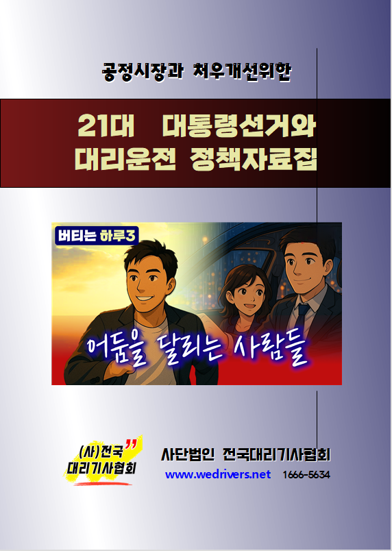 21대 대통령선거를 맞아, 전국대리기사협회는 정책자료집을 발간했습니다.
