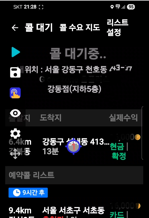 < 카카오 대리기사 프로그램 화면에 지지기 프로그램이 활성화되어있는 모습>
