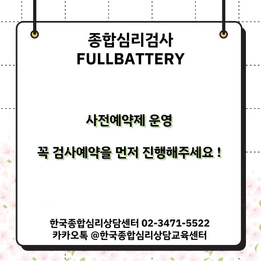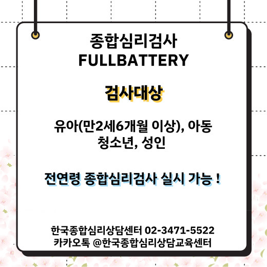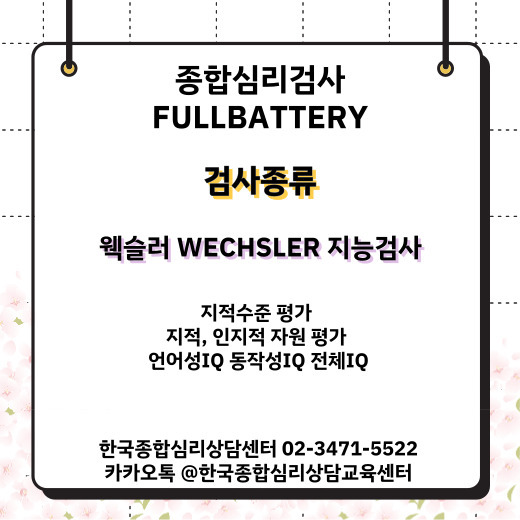성인 종합심리검사 풀배터리검사가 궁금하신가요?