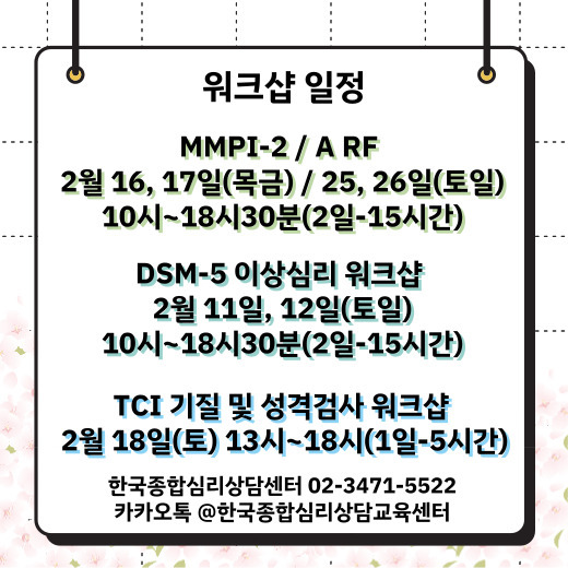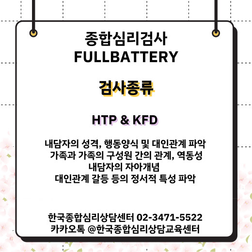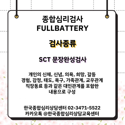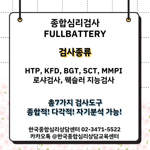 성인 종합심리검사 풀배터리검사 자기분석의 시간 (한국종합심리/방배)