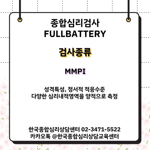 MMPI+SCT 는 기본검사라고 하여 단일검사로도 많이 실시되고 있습니다 ^^