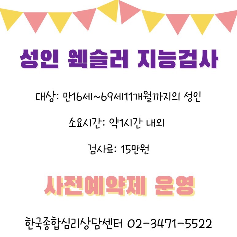 즉 만16세~69세11개월까지의 성인이라면 웩슬러 성인지능검사로 검사가 실시되며