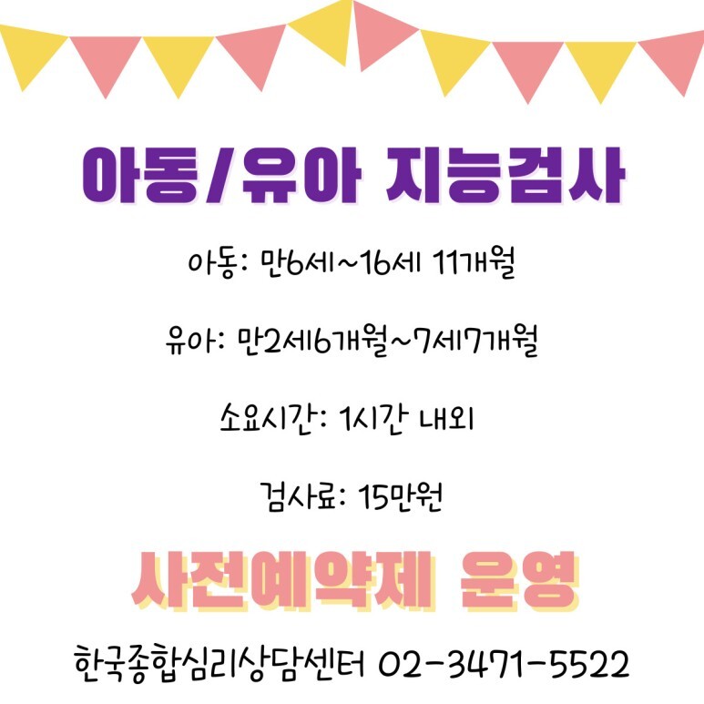 아동, 유아 지능검사도 별도로 마련되어 있습니다
