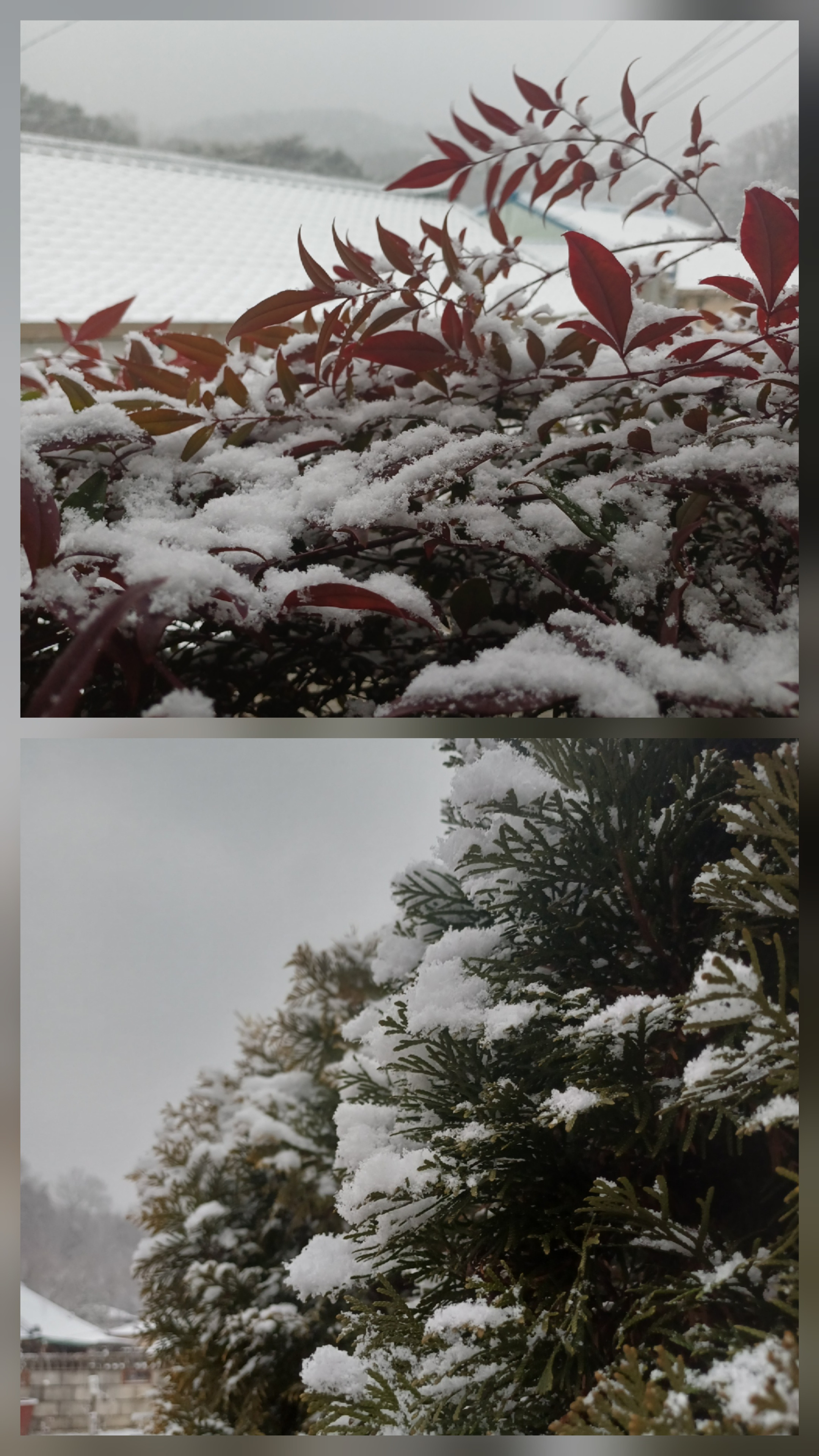 춥지는 않아서 그런지 눈이 살짝 녹으면서 내리고 쌓이는 것 같네요.