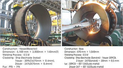 고도의 성장을 발판으로 오늘날 현대화를 이룩하여 보다 편리하고 안락한 생활을 영위하고 있는 현재 우리들은 그 문명의 고마움을 인식하지 못하고 살아가는 것이 지금의 현실이다. 현재 편리하고 윤택한 삶을 살아가고 있는 우리에게 여러 가지 요소들이 작용하고 있고 또한 다양한 원인이 우리의 삶을 편안하게 보다 안락한 생활을 제공하고 있지만 그 중 결코 간과해서는 안될 기술이 바로 용접(Welding) 기술이라고 생각한다. 이는 본인이 용접에 관련된 분야에 종사하고 있어서가 아니라 엄연한 현실이다. 용접이 없는 산업화란 상상하기 조차 힘들다. 현재 우리나라의 수출을 주도하고 있는 조선, 자동차, 플랜트, 건설, 중공업,기계산업 을 비롯하여 원자력,항공산업 등 용접산업의 발달 없이는 우리 인류는 결코 편리한 생활을 영위 할 수가 없다. 미국 발 금융위기로 인하여 다소 경기가 침체한 국면이 지속되고 있지만 향 후 ESW 용접의주력 업종이라 할 수 있는 원자력 및 석유화학 플랜트의 전망은 현재 장미 빛 이라 할 수 있다. 아마 용접산업의 "블루칩" 이라 할 수 있다. 용접저널 2월호 표지사진 참조. 1. ESW(Electrode Slag Welding) 용접이란? 전기용융법의 일종으로 Arc 열이 아닌 Wire 또는 Strip 형태의 전극이 Slag 사이에 흐르는 전류의 저항열을 이용하여 용접하는 특수 용접법으로 보통 두꺼운 판과 후판 사이에 용접을 하고 또한 Strip 용접전극을 사용하여 Overlay(육성용접법)를 하기도 한다. 여기서는 Strip 용접전극을 사용하여 Overlay 용접에 관하여 다루기로 한다. 용융된 Slag Pool 에 Strip 용접봉을 연속적으로 공급하는데 이 때 사용하는 Strip 용접전극의 크기는 두께0.4-0.5mm, 폭 25-120mm 의 Strip 용접전극을 사용하는데 주로 사용하는 형태는 0.4mm x 50mm(Japan) 와 0.5mm x 60mm(Euro type) 의 것이 주로 사용된다. ⑵ 용접원리 처음 Arc를 발생시킬 때 모재 사이에 공급된 Flux(용제) 속으로 Strip을 밀어넣고 전류를 통하여 순간적으로 Arc가 발생한다. 이 때 용접되는 원리는 Submerged Arc와 동일하다. 처음 발생되는 Arc가 꺼져버리고 저항열로 용접이 계속된다는 점에서Submerged Arc 용접과는 다른 점이라 할 수 있다. 처음 발생되는 Arc에 의해 용융된 모재와 용접Strip 용접전극 그리고 Flux가 화합하여 전기저항이 큰 용융 Slag를 형성하고 발생된 Arc 는 꺼지면서 Slag에 의한 저항열로서 용접이 계속 진행된다. ⑶ 용접전류 주로 정전압 특성을 갖는 대전류를 사용한다. 피 용접물은 Strip 용접전극의 두께와 폭 그리고 용접 모재의 두께에 따라 전류치는 600-2000Amp, 전압은 22-28Volt 정도를 사용한다. 용접전극(Strip) 은 Submerged Arc 와 동일한 것으로 사용되나 Flux(용제)는 SubmergedArc 와 완전히 다른 Flux를 사용한다. 참고로 ESW 용접에 사용되는 Flux는 12x65mesh 정도의 입자 크기의 것을 사용한다. ⑷ Magnet Steering Device(자력 조정장치) 이 장치는 ESW 용접에는 꼭 필요한 장치이다. 용접 효율을 극대화하고 Undercut 을 방지하여 불량을 줄여준다. 또한 용접 비드의 확장(60mm Strip Electrodes를 사용하면 약 67mm 정도의 용접비드가 형성)을 가져오고 오버랩되는 부위가 용접이 원활하게 하는 역할도 한다. ⑸ ESW 용접의 장점 ⑹ 장치의 구성 Manipulator: 보통 평균 크기는 4,000mm(높이) x 4,000mm(길이) 이상이어야 하고 특히 중요한 점은 End Road가 최소 200kg 이상이어야 원활한 작업을 이행 할 수 있다. ⑺ ESW Strip Electrodes 의 적용범위 ⑻ 용접재료 : Strip Electrodes와 Flux - 개발요망 제품 수년 전 까지 수입에 의존하던 Strip Head 를 국산화하여 특허를 출원 중(8건)이며 현재 제품의 성능은 수입품에 비하여 월등히 향상이 되었다. 그러나 현재 Strip Electrodes 와 Flux는 매년 수백억을 들여 전량 수입에 의존하고 있다. 이는 막대한 외화의 낭비를 초래하고 있으며 이는 용접봉을 전문적으로 생산하고 있는 기업들이 해결할 과제이다. 현재 한국은 조선업이 호황이다 보니 용접봉을 전문적으로 생산하는 기업들이 일반적인 제품에만 주력하고 있다. 그러나 조선업의 한계는 분명히 있고 또한 많은 수의 선박이 발주가 취소 되는 등 조선업종에도 불황의 그림자가 드리우고 있다. 앞으로 원자력산업, 석유화학 플랜트 등은 인류의 미래와 함께 할 산업이다. 국내 유수의 용접재료 메이커에게요구하고 싶은 것은 하루빨리 이 제품들을 국산화하여 외화를 절감하고 용접재료 수출 시장을 개척하여 고부가가치 산업에 동참하자는 것이다. ■ 문 의: (주)동우L&T ■ 주 소: 부산시 사상구 괘법동 산업용품유통상가 3동 129호 ■ TEL: 051-319-4381 ■ FAX: 051-319-2748 ■ http://www.dwweld.co.kr |