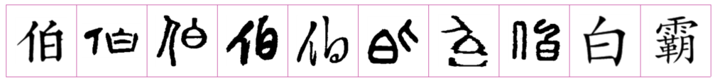 ① 伯은 人(사람 인)에 白(사뢸 백)을 더해 사뢰어야 하는 사람, 곧 우두머리를 뜻하고 한 집안에서는 ‘맏이’를 뜻한다. 白이나 覇(으뜸 패)로도 쓰고 읽는다. 큰아버지를 ‘伯父’라 하고, 第三等의 爵位를 ‘伯’으로 나타내며, 각 지역의 수령을 ‘方伯’이라 하고, 서쪽의 으뜸 패자를 ‘西伯’이라 일컫는데서 그 뜻을 볼 수 있다.