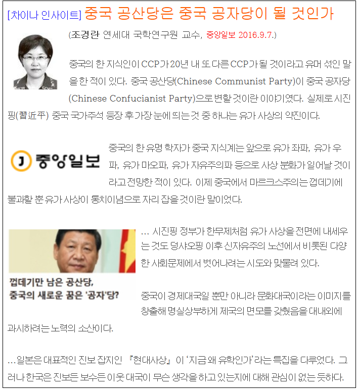 시진핑 외교 바탕도 공자 --- 한국 중국通 많이 나와야