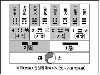 공자는 주역 계사전에서 이를 ‘易有太極하니 是生兩儀하고 兩儀生四象하고 四象生八卦라(역에 태극이 있으니, 태극이 음양을 낳고, 음양이 사상을 낳고 , 사상은 팔괘를 낳느니라)’고 하였다. 이렇게 해서 우주 자연만물은 끊임없이 낳고 또 낳아서 ‘낳는 것’을 순환반복한다. 공자는 이를 ‘生生之謂易’이라 하였다.