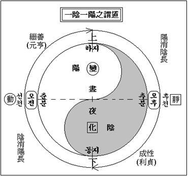 이를 음양의 분합(分合)작용이라고도 한다. 易은 음양의 분합작용으로 천지(天地)가 만물의 생명을 낳고 길러낸다(萬物資始, 萬物資生:易의 건괘, 곤괘)고 본다. 이에 공자는 周易 계사전에서 ‘한번은 음이 되고 한번은 양이 되는’ 음양의 동정(動靜)이 일으키는 삼라만상의 생성변화를 ‘도(道)’라고 하였다(一陰一陽之謂道).