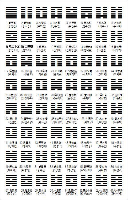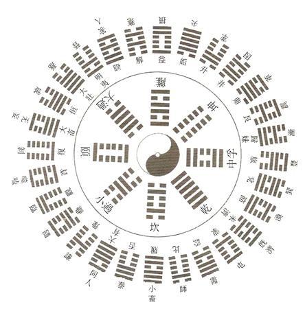 또한 “天尊地卑하니 乾坤이 定矣(계사상전 제1장)”라는 내용에 기초하여 陽先陰後의 이치로 복희씨가 처음 만든 괘를 先天八卦라 한다. 팔괘는 복희씨가 天文의 象인 河圖에서 一부터 十까지 그 數가 베풀어지는 理致를 살펴 그렸다고 한다. 象數理의 이치에 근거하여 그린 복희씨 선천팔괘가 天地間에 가득 찬 음양기운의 始生원리를 다룬 것이라면, 文王이 지었다는 後天八卦는 그 기운의 작용 속에 생성된 剛柔의 相推와 相盪과 相摩작용을 나타낸 것으로 볼 수 있다. 小成卦인 팔괘가 다시 거듭하여 大成卦를 이루는데, 一貞八悔의 순으로 생성되는 복희씨의 64괘 방위도와 周易의 64괘의 순서가 陰陽의 始生원리와 剛柔의 造化작용의 이치를 잘 나타내고 있다.