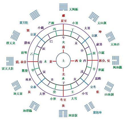 주(周)나라의 역법으로 볼 때 坤의 때는 일 년을 마치는 亥月(해월, 坤月 ䷁)을 나타내며, 復의 때는 일 년을 시작하는 子月(자월, 復月 ䷗)을 나타낸다. 하지만 주나라에서 세수(歲首)로 쓰던 子月은 실제로 한겨울에 해당하므로 이후는 주나라보다 앞선 시대의 하나라 역법을 보편적인 책력으로 채택하였다. 12지지와 12달을 나타낸 태극도를 놓고 볼 때, 夏나라 역법상 子月에 해당하는 11월인 復月은 겨울인 정북방(오행상 水)에 위치한다. 양(一) 하나가 처음 생기는 復(䷗))괘를 12지지의 처음인 子에 대비시켜 가장 어두울 때에 밝음이 비로소 다시 시작됨을 나타냈고 월력으로는 11월에 배속시켰다.(도표 1 참고)