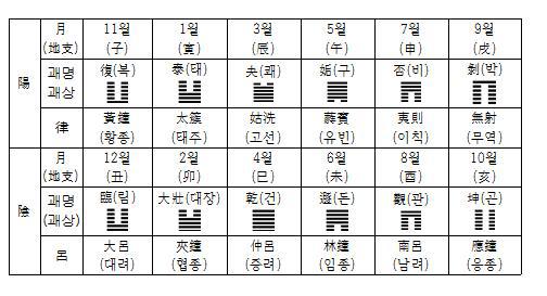 [표] 12地支, 괘, 율려로 나타낸 책력