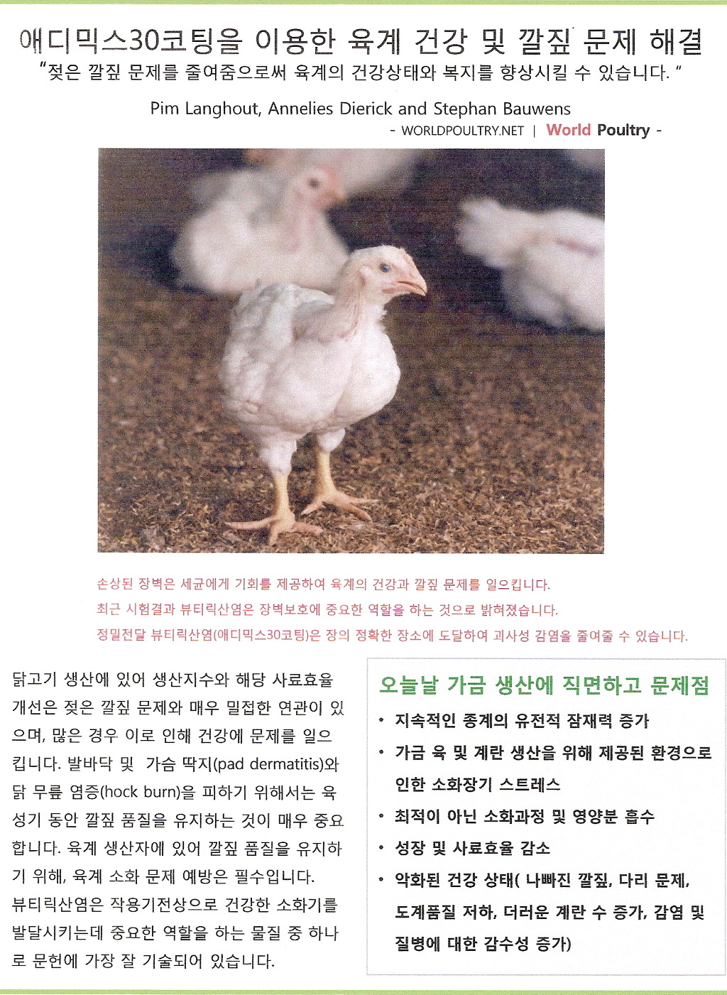 애디믹스30코팅을 이용한 육계건강 및 깔짚문제해결 (World Poultry) 작성자아미텍6K5YKV|작성시간15.06.08|조회수35 목록 댓글 0 글자크기 작게가 글자크기 크게가 월드 폴츄리 원문 2.애디믹스-Target_Release_Na-butyrate_to_fight_major_health_and_litter_problems_070410.pdf 번역문 2.애디믹스 - 가금 건강 및 깔짚 문제 해결을 위한 애디믹스30코팅 효과-1.pptx 첨부파일첨부된 파일이 10개 있습니다. jpg 파일 scn0004.jpg 다운로드 jpg 파일 scn0005.jpg 다운로드 jpg 파일 스캔0001.jpg 다운로드 jpg 파일 스캔0002.jpg 다운로드 pdf 파일 2.애디믹스-Target_Release_Na-butyrate_to_fight_major_health_and_litter_problems_070410.pdf 다운로드 pptx 파일 2.애디믹스 - 가금 건강 및 깔짚 문제 해결을 위한 애디믹스30코팅 효과-1.pptx 다운로드 jpg 파일 애디_양계1.jpg 다운로드 jpg 파일 애디_양계2.jpg 다운로드 jpg 파일 애디_양계3.jpg 다운로드 jpg 파일 애디_양계4.jpg 다운로드 다음검색 현재 게시글 추가 기능 열기 북마크 공유하기 신고 센터로 신고 댓글 댓글 0 댓글쓰기 답글쓰기 댓글 리스트