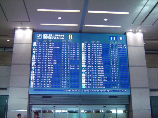 바로 현재 운항되거나 운항예정인 모든 항공기의 출발, 도착정보가 시시각각 제공되는 전광판을 확인하는 일입니다.