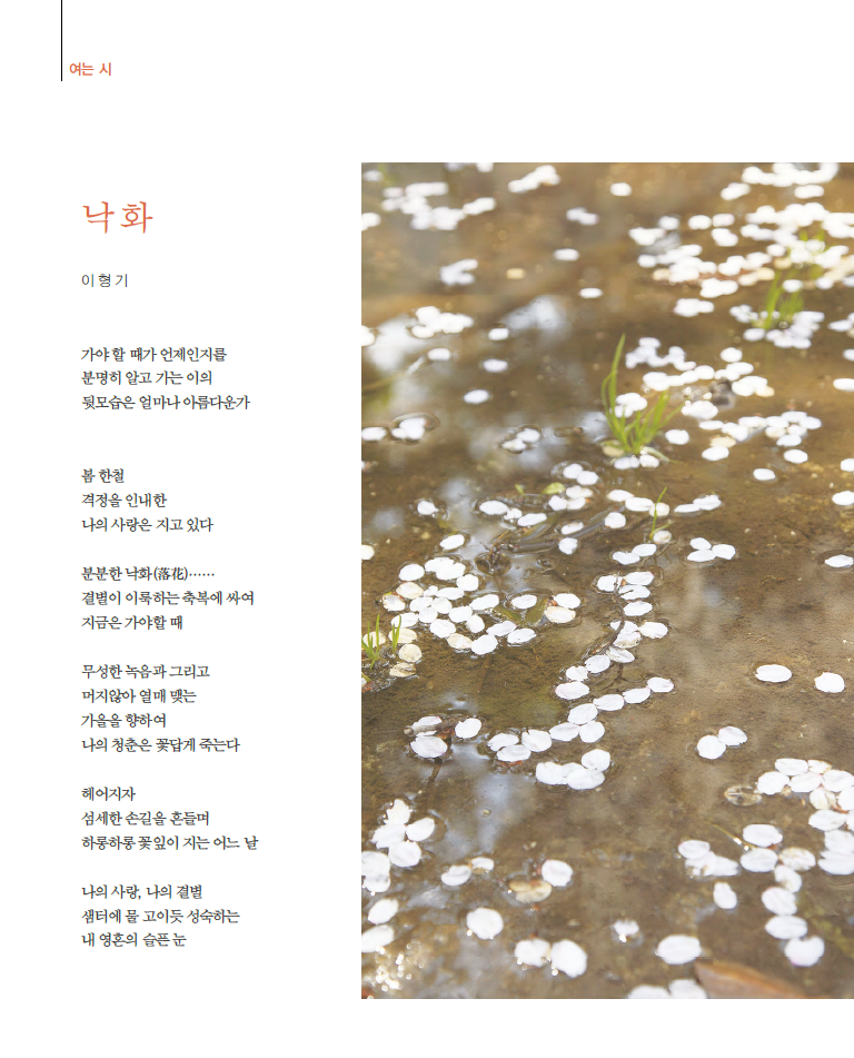 이형기 시인의 시, 낙화 작성자오진탁|작성시간17.08.09|조회수496 목록 댓글 1 글자크기 작게가 글자크기 크게가 다음검색 현재 게시글 추가 기능 열기 북마크 공유하기 신고 센터로 신고 댓글 댓글 1 댓글쓰기 답글쓰기 댓글 리스트 작성자효산-권영구 | 작성시간 17.08.10 삶과 죽음의 근원을 깊이 들여다본 뜻 깊고 아름다운 시 감사합니다. 댓글 전체보기